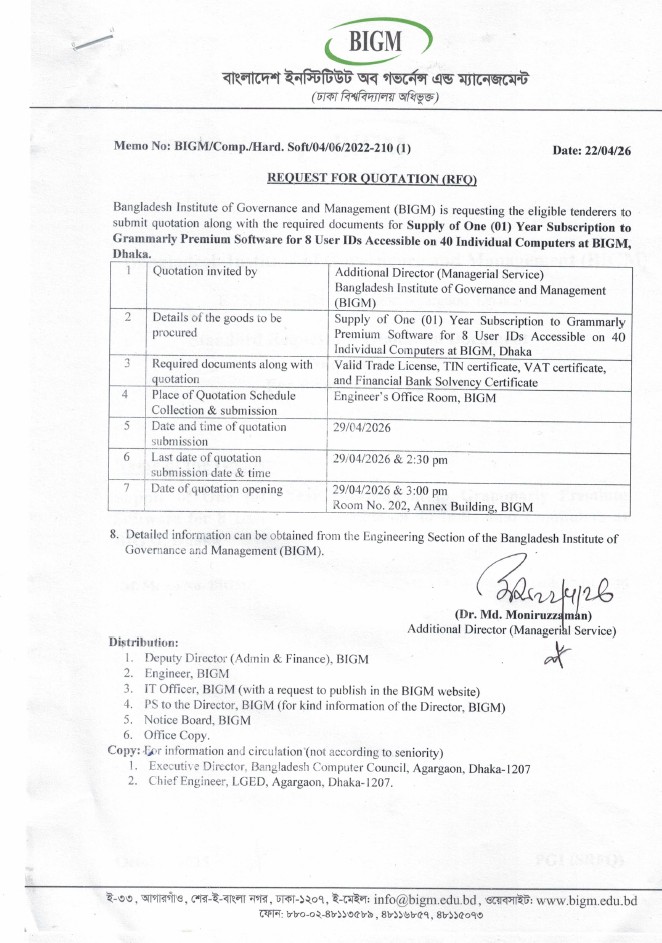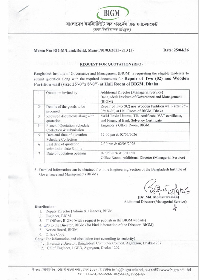 On behalf of Bangladesh Institute of Governance and Management (BIGM) I would like to welcome and thank you all for showing your interest in BIGM. At the very outset it is good to be reminded of the elements that make BIGM unique. The most fundamental trait of BIGM is the uncompromising commitment to excellence in education, research and training, enshrined in the BIGM’s mission statement.