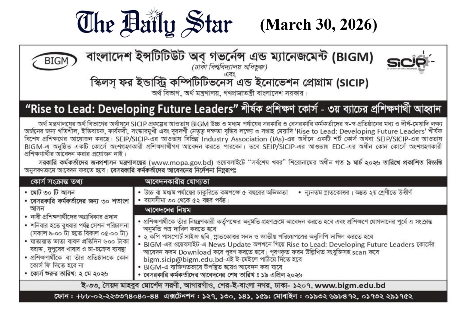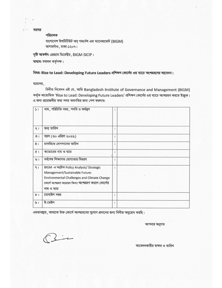 Admission Circular: "Rise to Lead-Developing Future Leader (Batch-3)"