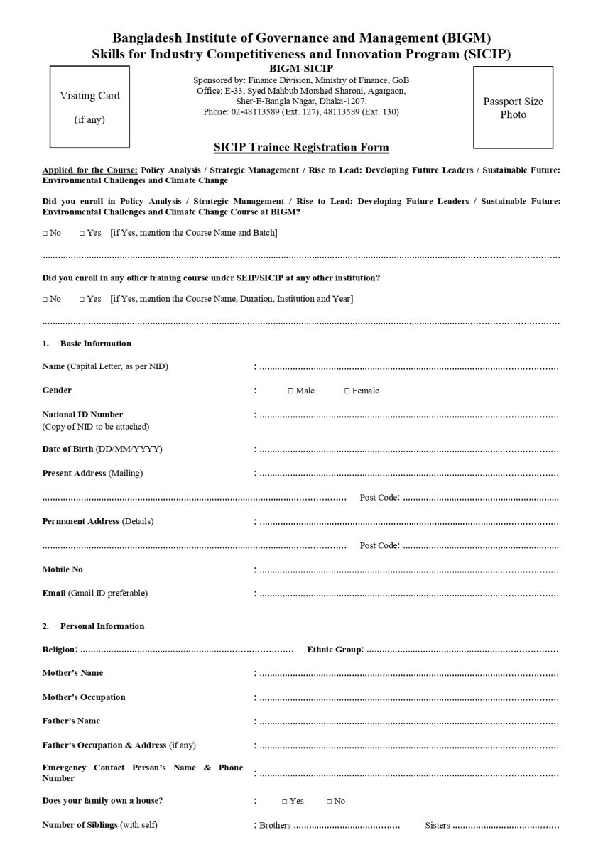 Trainees Admission Circular of BIGM-SICIP Policy Analysis Course, Batch-5 (overall 24)