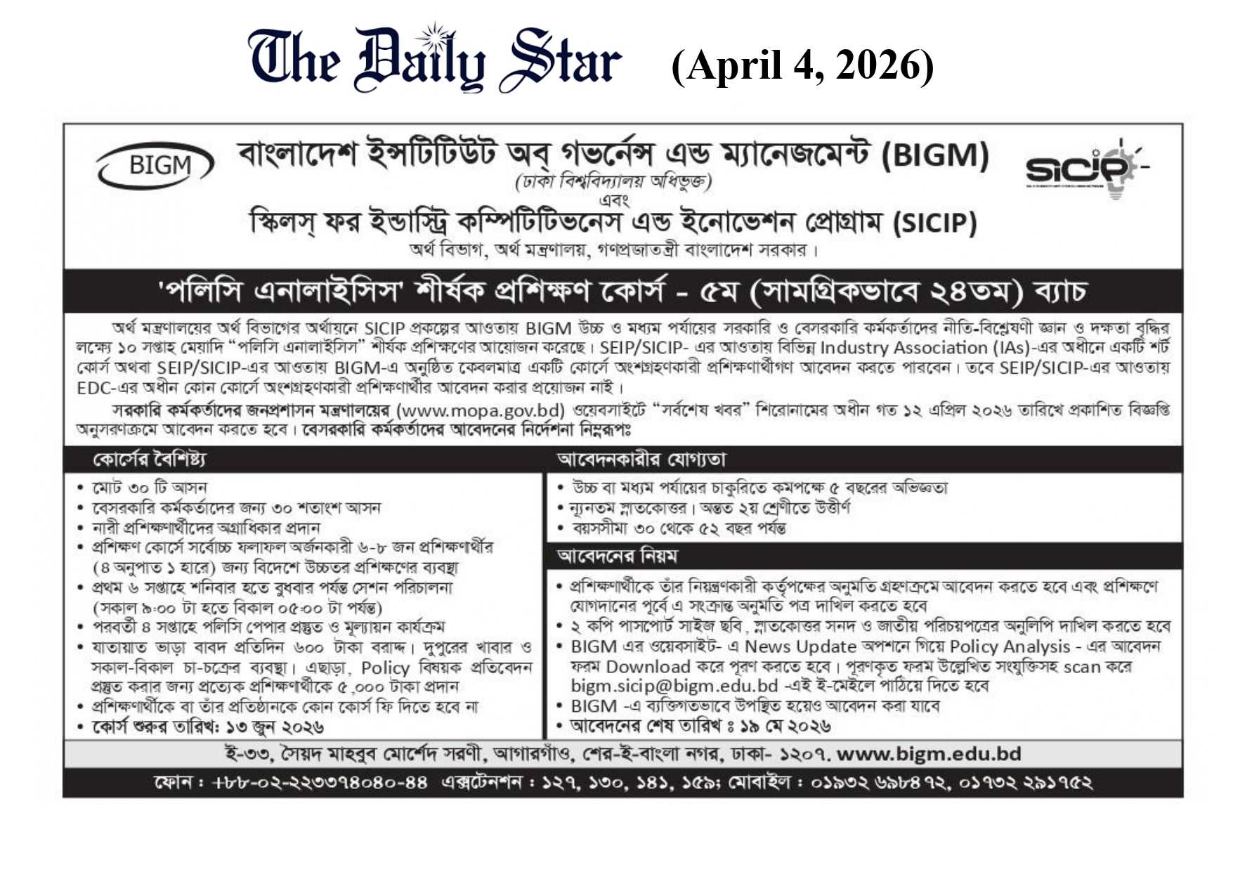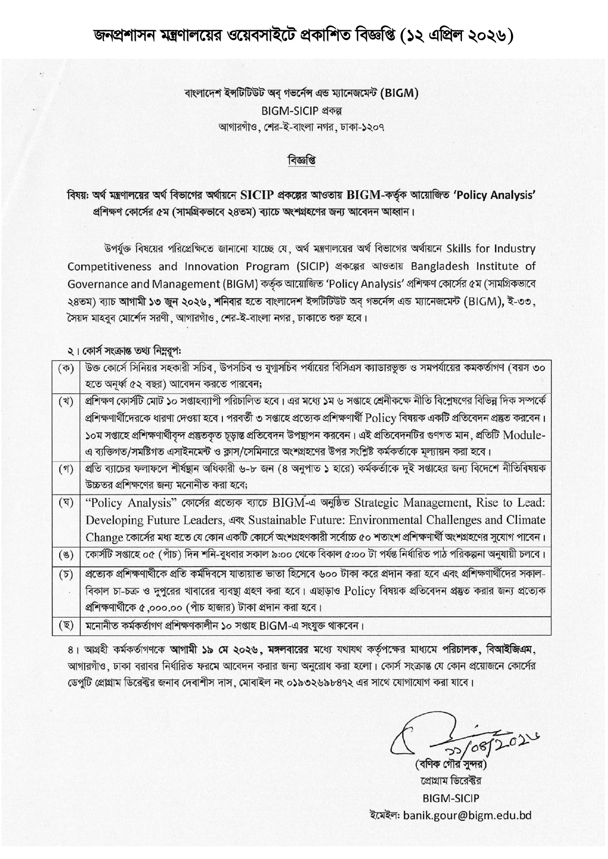 Trainees Admission Circular (Government Officials) of BIGM-SICIP Policy Analysis Course, batch-5 (overall 24)