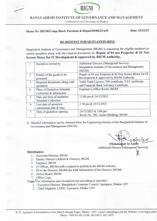 পলিসি এনালাইসিস" শীর্ষক প্রশিক্ষণ কোর্সের ৪র্থ (সামগ্রিকভাবে ২৩তম) ব্যাচের নির্বাচিত প্রশিক্ষনার্থীদের তালিকা | Quotation Notice | Quotation Notice | Deadline Extended for Training Course on "Fundamentals of Research Methodology" | Invitation for Tender (IFT No-04/2025-26) | Statistical Modeling with R (Batch 3) | Training on "Application of Mathematics and Statistics for Social Science Research with R" | BIGM Research Training Gantt 2025–26 | জনপ্রশাসন সংস্কার কমিশনের প্রতিবেদন