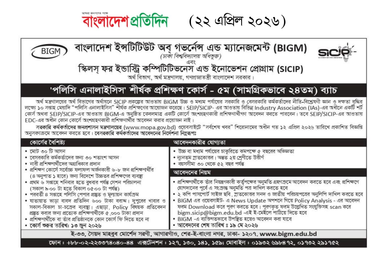 Trainees Admission Circular of BIGM-SICIP Policy Analysis Course, Batch-5 (overall 24)